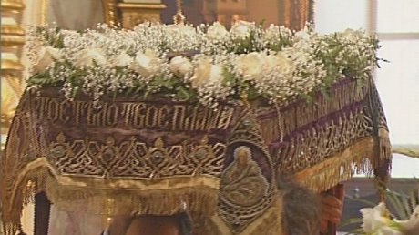 Плащаницу кладут на специальный стол в центре храма. Здесь она будет находиться до позднего вечера субботы, верующие смогут прикоснуться к святыне. В алтарь Плащаницу вернут перед пасхальным богослужением.