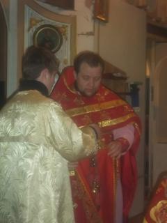 После заамвонной молитвы отец Евгений освятил артос, и по окончании богослужения поздравил всех с Пасхой Христовой.