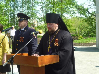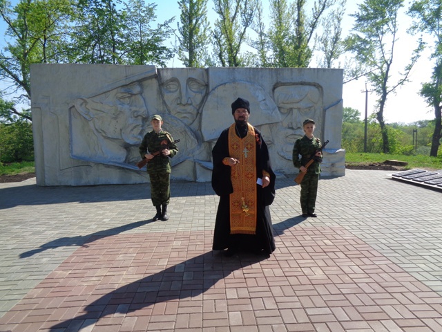 Праздник Великой Победы - день, когда поминают усопших воинов за веру, отечество и народ жизнь свою положивших, и всех страдальчески погибших, умерших от ран, в плену, от непосильных работ, содействуя Победе в годы Великой Отечественной войны. В честь этого знаменательного события иереем Сергием (Чикиным) на стеле была совершена панихида.