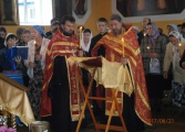 21 июня.в среду,прихожане храма Преображения Господня встречали ковчег с мощами святителя Николая Чудотворца на окраине поселка Исса (дорога с.Булычево-п.Исса).Возглавили шествие Крестного хода иерей Александр (Верба) и иерей Сергий (Чикин).Множество людей вливалось в строй по дороге к храму.Даже небольшой дождь не явился помехой для верующих.Церковь Преображения Господня встречала мощи святителя Николая звоном колоколов.Войдя в храм,прихожане зажгли свечи.Священнослужителями был прочитан акафист святителю Николаю Чудотворцу и отслужен молебен.Все православные христиане с верой и благоговением приложились к мощам святителя Николая Чудотворца,которые будут находиться в Церкви Преображения Господня до 26 июня.