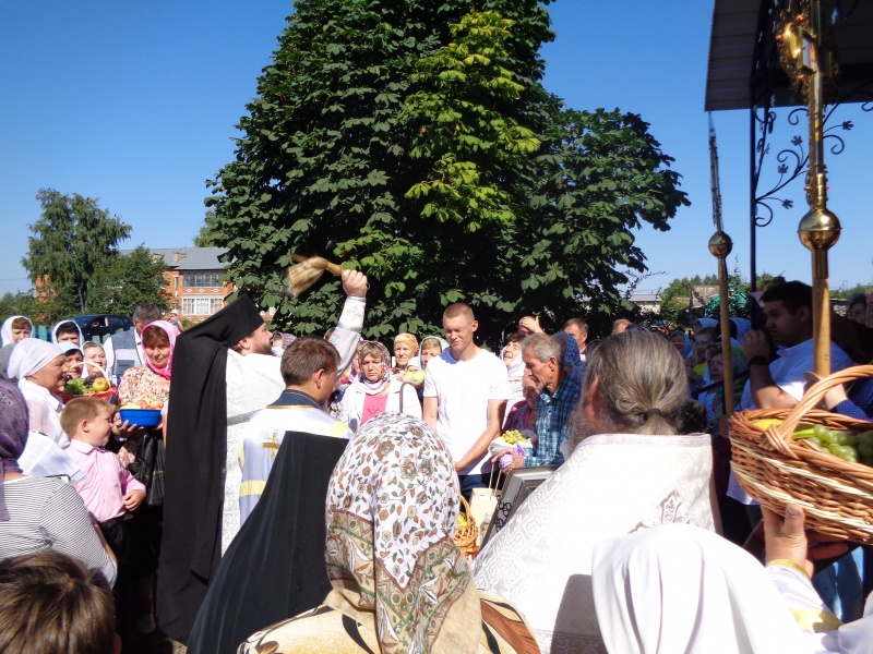18-19 августа,на Преображение Господа Бога и Спаса нашего Иисуса Христа и накануне праздника,настоятель-иеромонах Иоанн (Костин) совершил Литургию и всенощное бдение в Иссинской Преображенской церкви.Сослужил ему иерей Александр (Верба).По окончании Литургии состоялся Крестный ход вокруг храма,после которого иеромонах Иоанн(Костин) совершил чин освящения плодов нового урожая.В своей проповеди настоятель-иеромонах Иоанн (Костин) подчеркнул:"Церковь,зная,что есть подлинное Преображение,должна воздействовать на человеческое общество,чтобы каждый человек,в меру своих сил,достигал того преображения,которое просияло на горе Фавор;а тогда изменится и человеческое общество.Главное усилие Церкви в области устроения общественной жизни заключается в воспитании личности и в воздействии на сферу общественных отношений.И хотя преображение наподобие фаворского невозможно для общественного измерения человеческой жизни,но,если каждый будет стремиться к своему личному преображению,то изменится и жизнь человеческого общества."По традиции в праздник Преображения ("Яблочного Спаса",как называют в народе день Преображения Господня) состоялась праздничная трапеза,устроенная прямо на улице,куда были приглашены все прихожане.Настоятель храма поздравил собравшихся с великим праздником Преображения Гоподня.В свою очередь,многочисленная паства поздравила духовенство с престольным праздником.Еще одним важным событием явилось то,что прихожане имели возможность приложиться к частицам мощей Святых:блаженной Матроны Московской и исповедника архиепископа Луки Крымского,прибывшим в храм 16 августа с Кузнецкой епархии ,которые пребудут здесь до 20 августа.