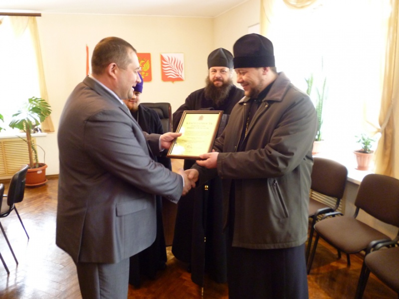 Его Преосвященство сопровождали благочинный округа иерей Павел Курганов и настоятель Преображенского дома р.п. Исса протоиерей Евгений Костин, которому глава исполнительной власти района А.Кулигин торжественно вручил благодарность Губернатора Пензенской области за вклад в духовно-нравственное развитие общества.